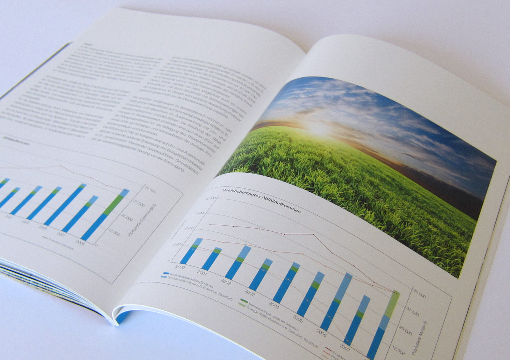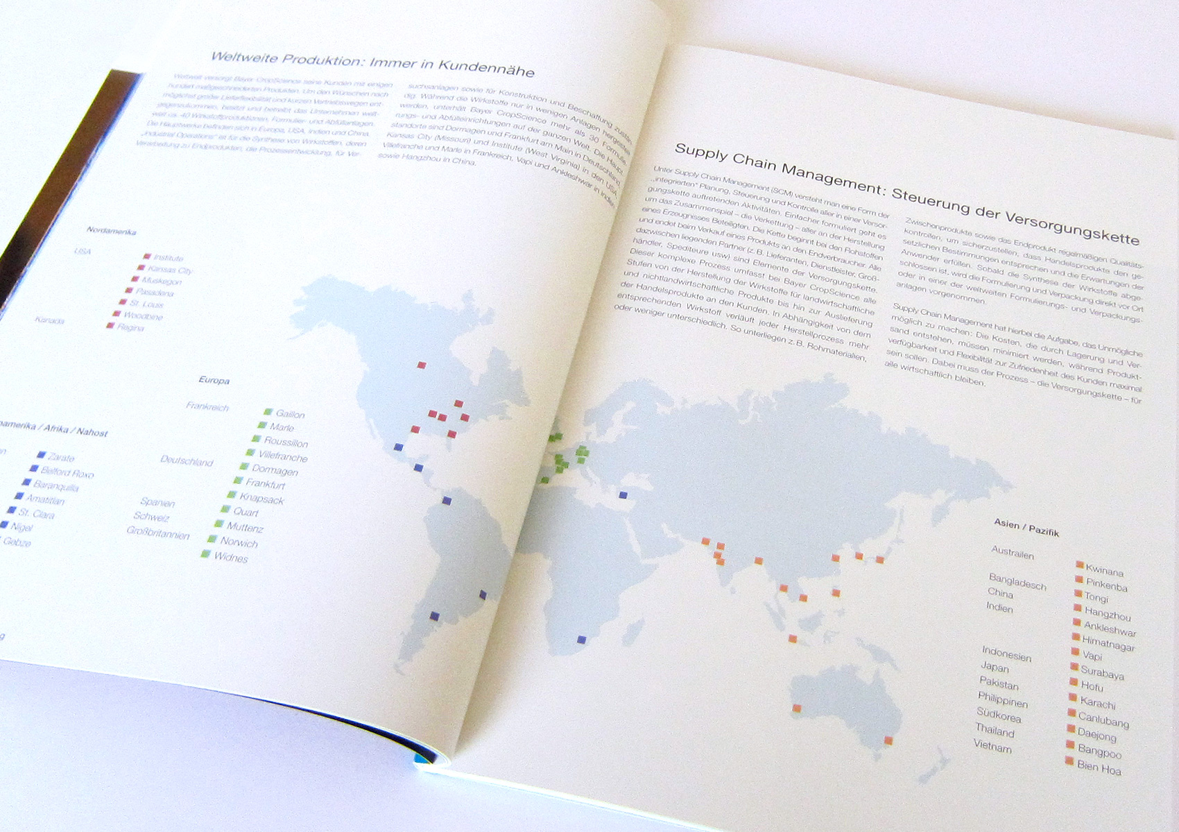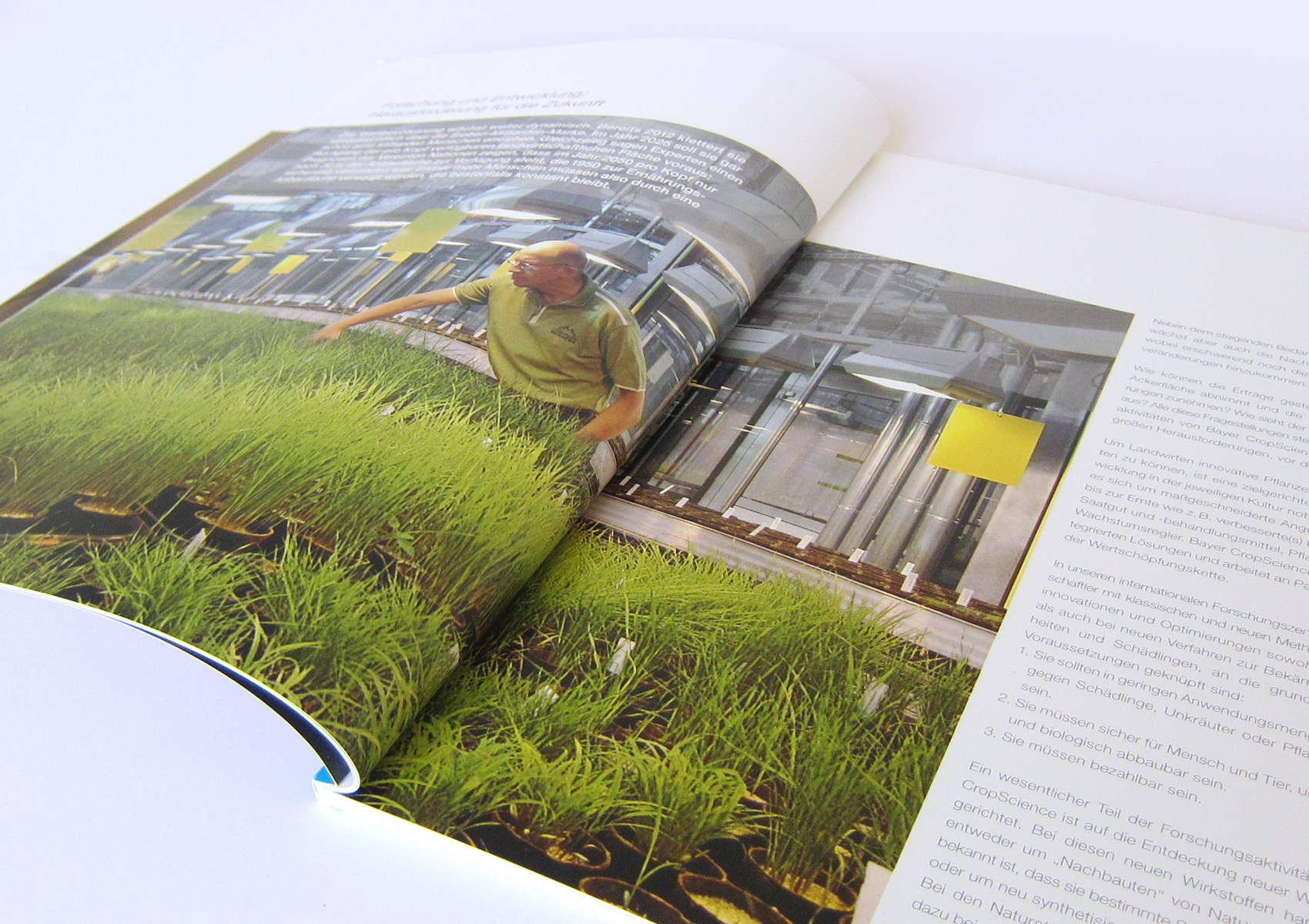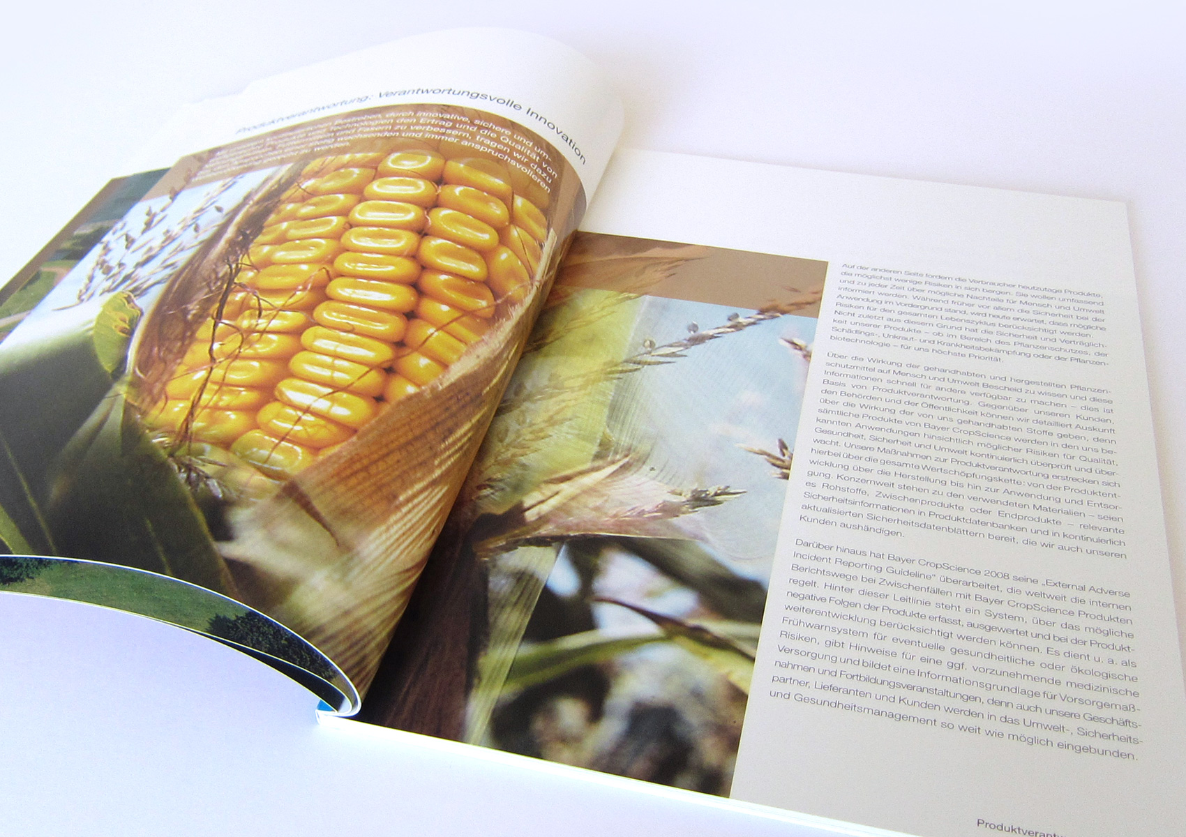 Für die jährlich erscheinende, knapp 80 Seiten starke Umwelterkärung von Bayer Crop Science für den Standort Frankfurt wurden das Layout und das Bildkonzept völlig neu konzipiert und umgesetzt.