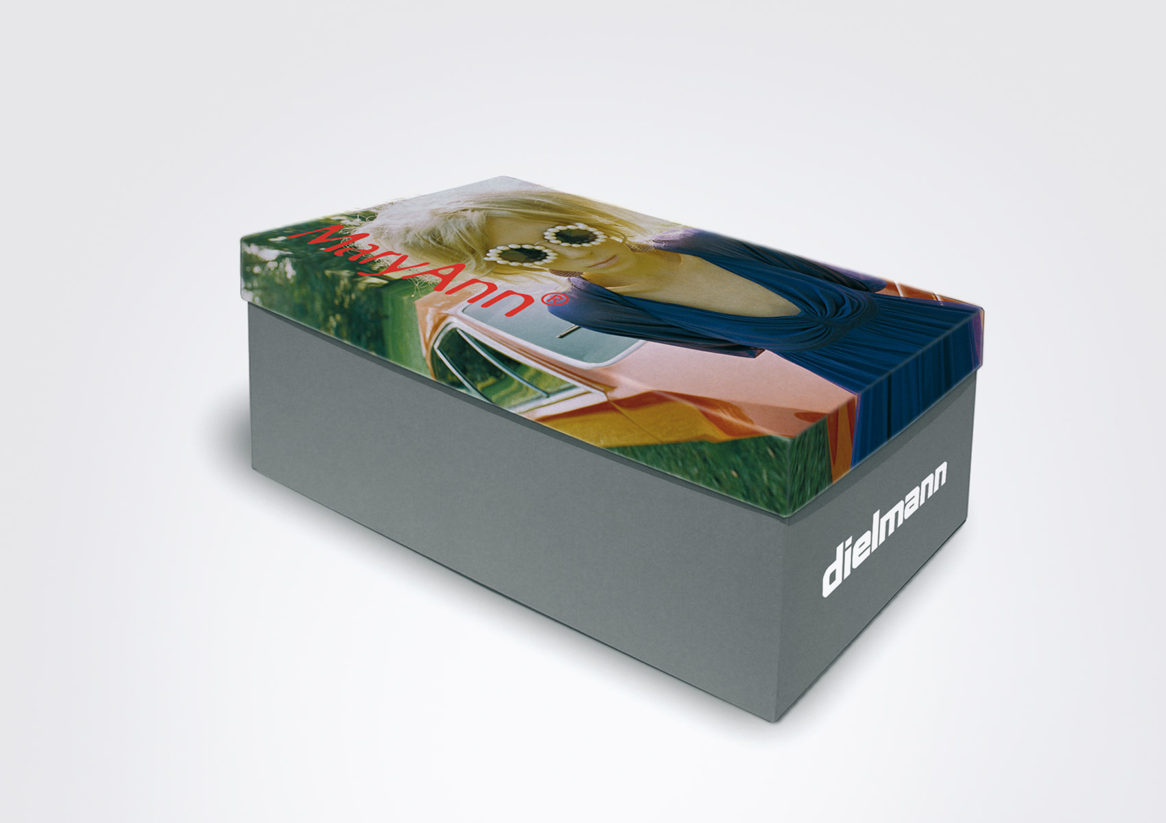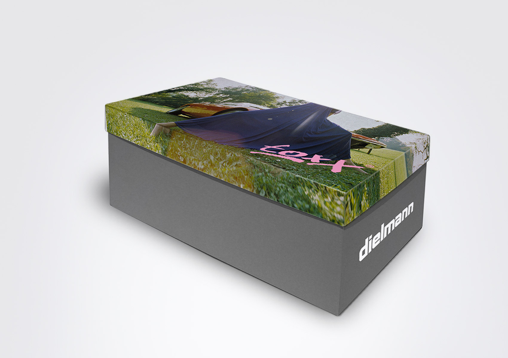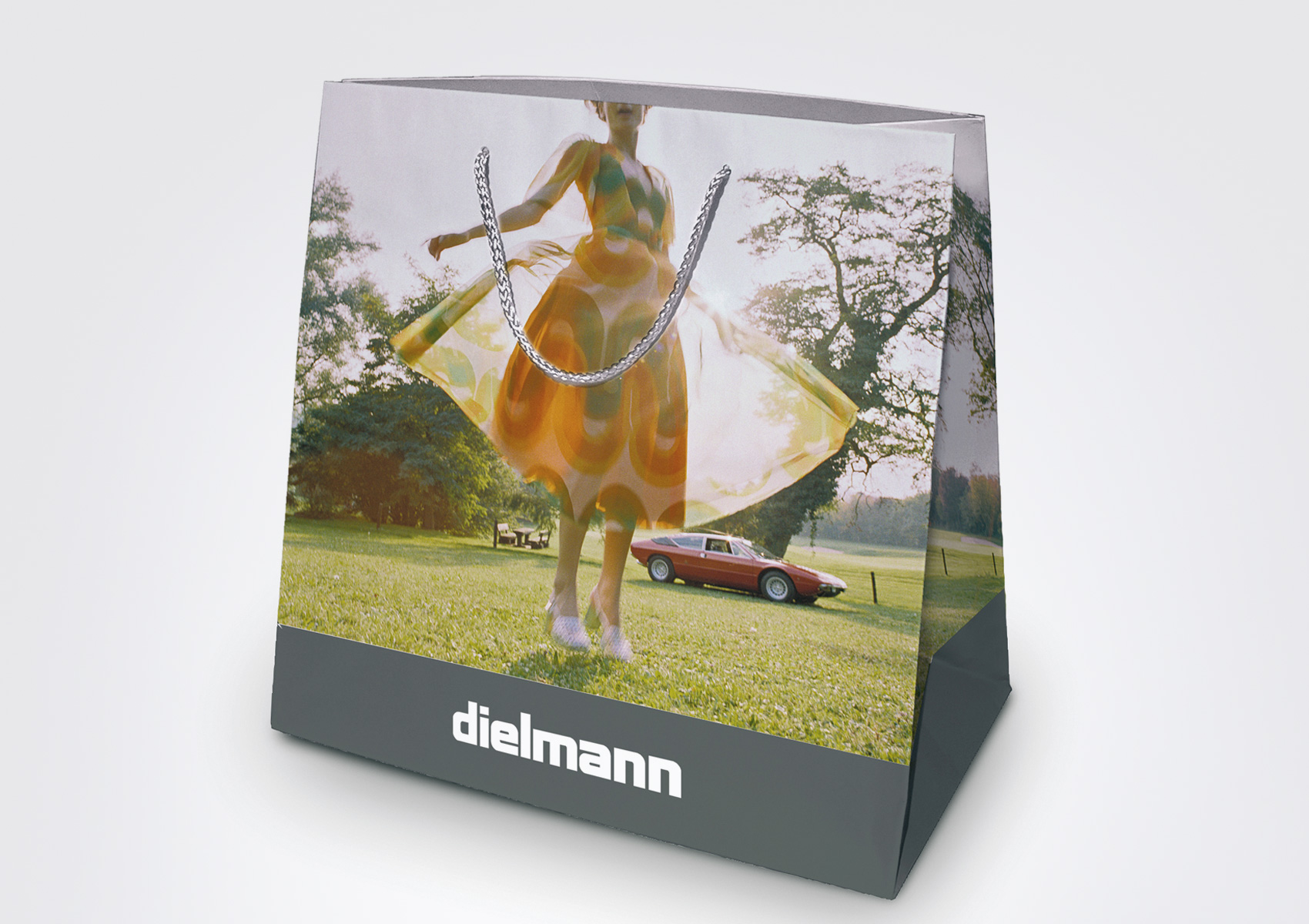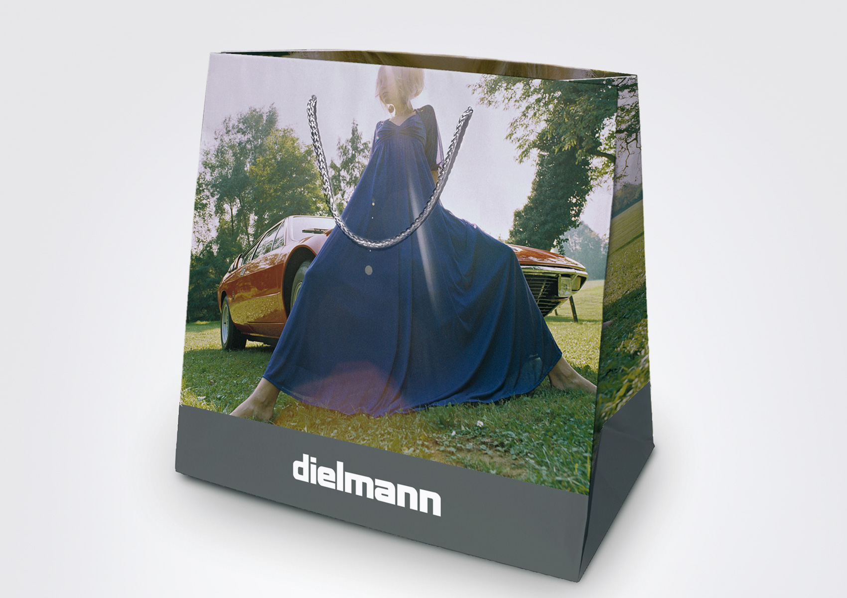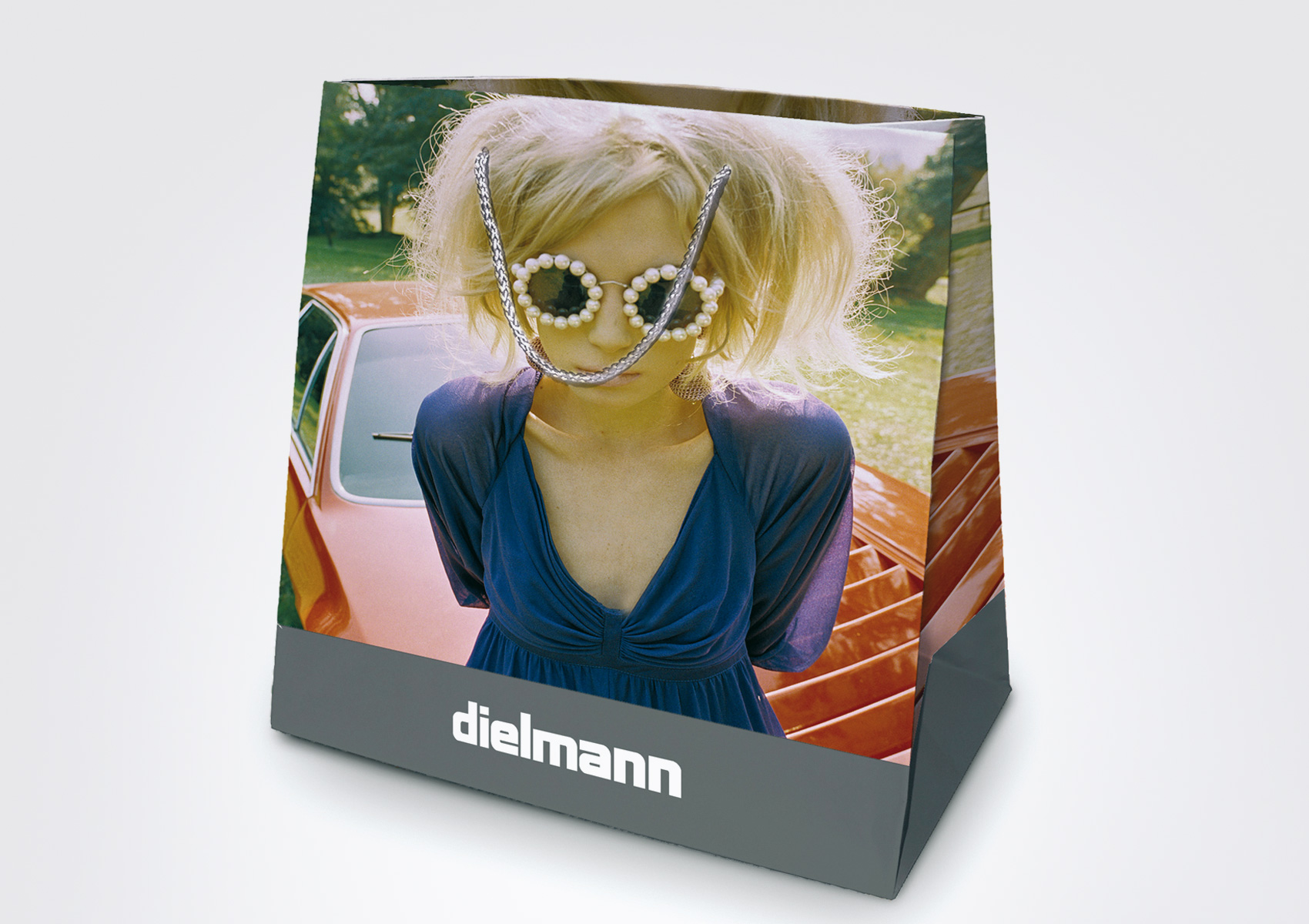 Auch die von Dielmann verwendeten Verpackungen, Schuhkartons und Tüten, haben neben der funktionellen eine Image-Komponente. Sie zeigen dieselben Motive, die zu bestimmten Anlässen wie Neueröffnungen, Renovierungen, Sonderangeboten oder Sales-Aktionen auch in den Anzeigen eingesetzt werden.