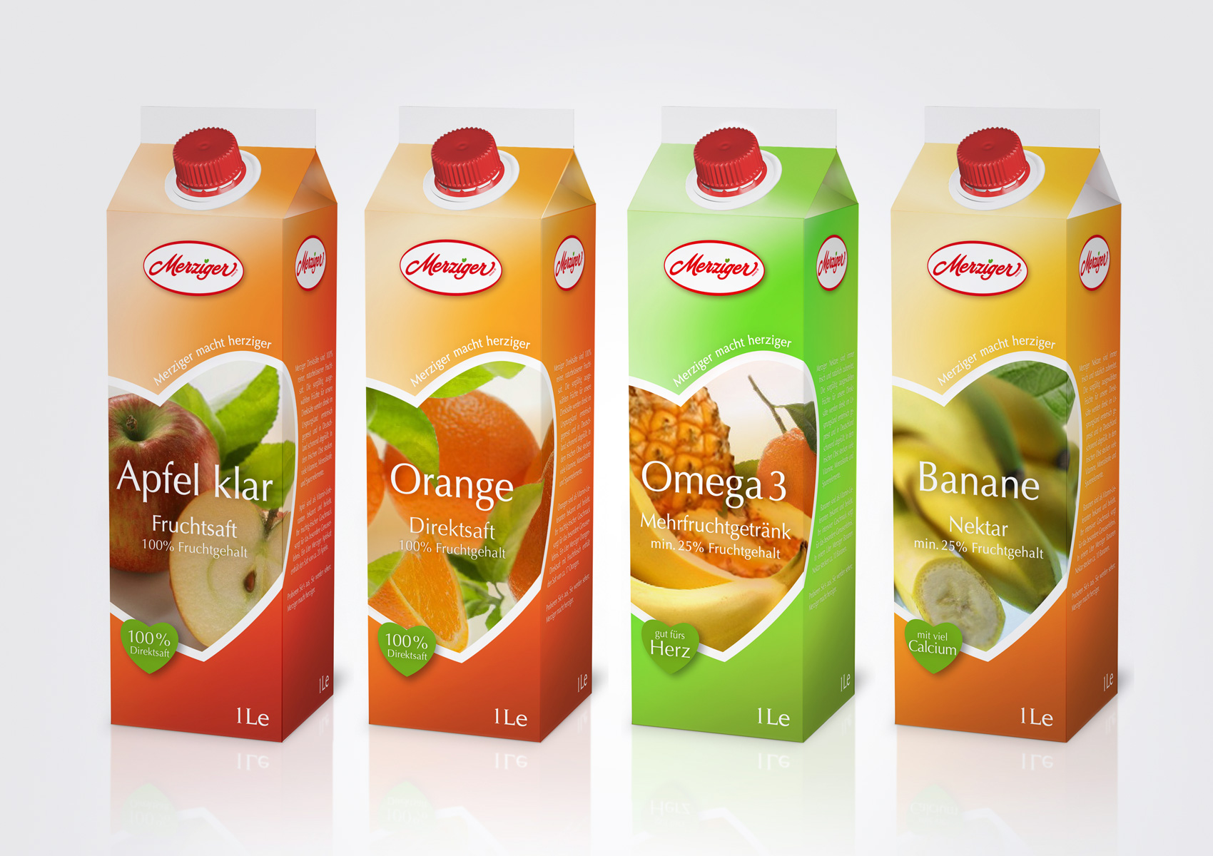 „Merziger ist herziger“ – beim Relaunch der Fruchtsaftmarke wurde der Slogan auch beim Packungs-Design zum Programm.