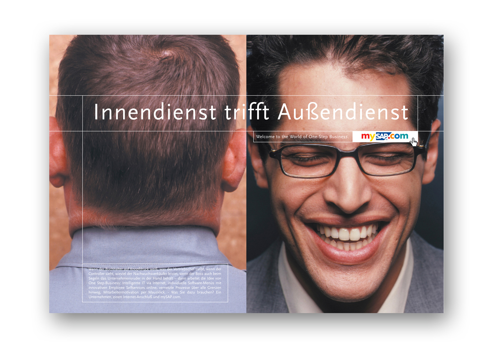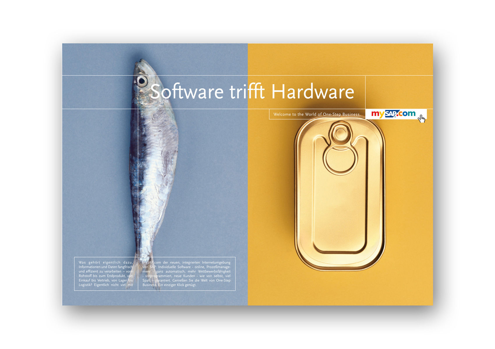 Mitte der 90er Jahre waren B-to-B-Portale und E-Commerce relativ unbekannt und wurden entsprechend wenig genutzt. Diese 16 Motive umfassende Print-Kampagne sollte dies ändern und den Online-Marktplatz mysap als Plattform für alle Bedürfnisse des täglichen Business etablieren.